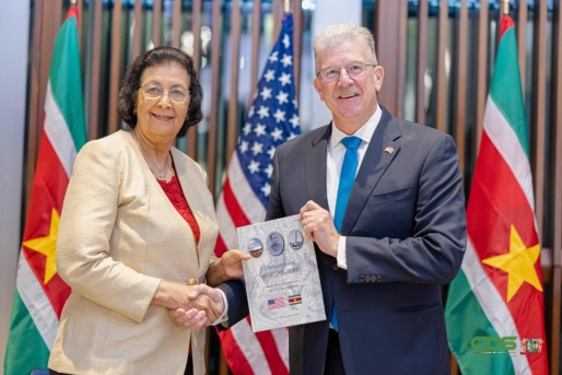 Suriname en de Verenigde Staten van Amerika vieren dit jaar 50 jaar van diplomatieke betrekkingen. Tijdens een plechtige bijeenkomst op 26 november 2025, op de Amerikaanse ambassade, spraken president Jennifer Simons en de Amerikaanse ambassadeur Robert Faucher over de historische ontwikkeling én de toekomstige koers van de bilaterale relatie. Ter gelegenheid van het jubileum heeft de Amerikaanse ambassade een speciaal boekwerk uitgebracht, dat de veelzijdige band tussen Suriname en de VS belicht.
