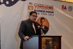 President Chan Santokhi eregast op het Suriname Business Forum in New York