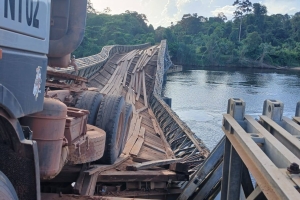 VIDEO: Brug over Coppenamerivier bij Witagron gedeeltelijk ingestort