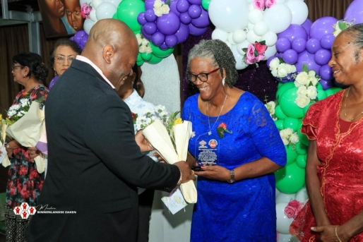 President feliciteert Surinaamse vrouw in verband met Internationale Vrouwendag