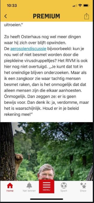 Besef dat Van Dissel 4 weken geleden bij de zitting in de Tweede Kamer aankondigde dat men bezig was met een onderzoek over aerosoles. Dat is er nog steeds niet. Uit welingelichte kringen heb ik vernomen dat dit komt door een grote tweespalt bij de betrokkenen. Er is een groep die wel wil schrijven dat die microdruppels een grote rol spelen, maar een andere groep die dat niet wil. Met als resultaat dat er nog steeds geen rapport is, maar geen haan die er blijkbaar naar kraait in de journalistiek of in de Tweede Kamer.