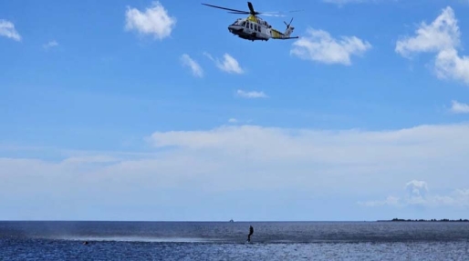 De precieze locatie van een ‘drenkeling’ werd door de sensors opgevangen en via de satelliet vastgesteld, waarna hij uit het water werd gevist door een helikopter van de kustwacht. | Beeld: ABC Online Media |Auteur: Armand Snijders