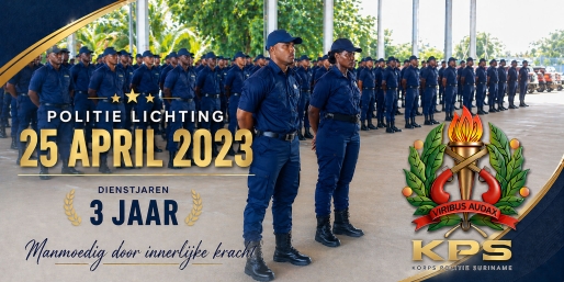 Het Korps Politie Suriname feliciteert de collega’s die op 25 april 2023 in dienst zijn getreden bij het Korps Politie Suriname. Deze politieambtenaren herrinneren het heuglijk feit dat zij reeds drie jaar in dienst zijn van de politieorganisatie. Namens de korpsleiding worden deze collega’s alsnog gefeliciteerd. Blijft u zorg