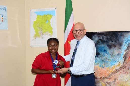 De minister sprak de studenten en hun begeleiders, Shaiesta Nabibaks en Nailah Van Dijk toe en benadrukte hoe trots hij is dat zij Suriname op een positieve manier op de kaart hebben gezet. Volgens hem verdienen dit soort prestaties meer aandacht, omdat ze een inspirerend en positief beeld schetsen.