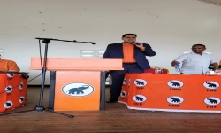 “Wij moeten erop toezien dat wij geen houtconcessies verliezen aan buitenlanders”, zegt VHP-assembleelid Mahinder Jogi. Hij probeert een lans te breken voor Surinaamse houtconcessionarissen.