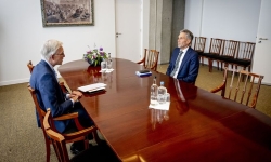 Na aankomst te Nassau, Bahama’s heeft president Chandrikapersad Santokhi een bilateraal gesprek gehad met de president en voorzitter van de Raad van Bestuur van de Afreximbank, professor Benedict O