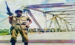 Foto: Een (historische) foto van een man in uniform die Abdoel L. op zijn facebookpagina heeft geplaatst. L. wordt verdacht van oorlogsmisdrijven in Suriname. © Prive