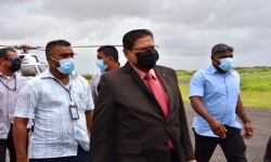 President Chandrikapersad Santokhi is om 13.55 uur geland op het vliegveld van Nieuw Nickerie. Het staatshoofd is er voor een eendaags werkbezoek.