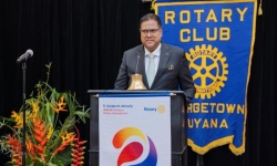 President Chan Santokhi was tijdens zijn bezoek in Guyana, de keynote spreker bij de jaarlijkse World Understanding Brunch van de Rotary Club of Georgetown.