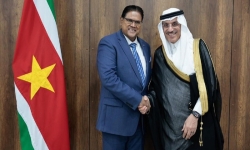 Muhammad Al Jasser, de president van de Islamic Development Bank (IsDB), heeft een beleefdheidsbezoek gebracht aan president Chan Santokhi.