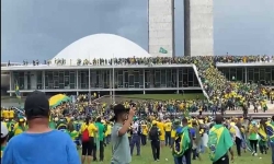 Foto: De bestorming in januari van dit jaar van overheidsgebouwen in Brazilië door Bolsonaro-aanhangers | Bron: NU.nl
