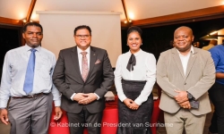 President santokhi ontvangt 'Handboek constitutioneel recht Suriname’ te ontvangen uit handen van Mr. Dr. Hugo Fernandes Mendes