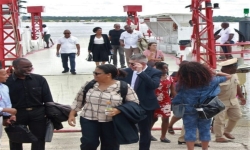 Vandaag heeft de President samen met minister Riad Nurmohamed van OW, een rondleiding gekregen op het schip van baggerbedrijf De Boer-Boskalis met wie er een Joint Venture getekend is.