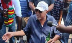NDP-voorzitter tevens ex-president Desi Bouterse was gisteren ook aanwezig op het Onafhankelijkheidsplein om te protesteren tegen het beleid van de regering.