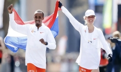 Abdi Nageeye heeft zondag de 41e editie van de marathon van Rotterdam gewonnen.