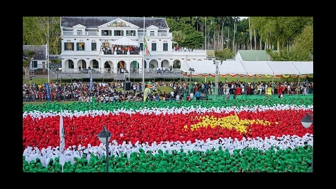 Het Onafhankelijkheidsplein was zondag 16 november 2025 het toonbeeld van eenheid en nationale trots. Niemand anders dan de Surinaamse jeugd slaagde erin om de historische plek van samenkomen in verbondenheid te kleuren met een gigantische mensenvlag in de kleuren vanSurinames trots. Onder toeziend oog van regeringsfunctionarissen vanaf het bordes van het presidentieel paleis en een enthousiaste