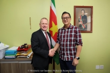 Amerikaanse Ambassade op bezoek bij Ministerie van Binnenlandse Zaken 28 feb 2026 - 17:41Op 27 februari was de heer Paul Watzlavick in de hoedanigheid van nieuwe tijdelijke zaakgelastigde (Chargé d’Affaires a.i.) van de Amerikaanse ambassade te gast op het Ministerie van Binnenlandse Zaken (Min BiZa).Minister Marinus Bee werd in zijn vergaderruimte vergezeld door directeur Nasir Eskak en de directeur van het Bureau van de Minister, de heer Ravin Soerdjbalie.De voortzetting en verd
