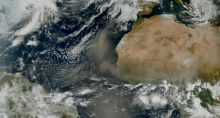 ALARM OVER RECORDBREKENDE SAHARASTOFWOLK EN LUCHTVERVUILING IN SURINAME: VOLKSGEZONDHEID SLAAT ALARM 24 feb 2026 - 16:24Foto: Sattelietbeeld van Sahara stof richting latijns Amerika en het Caribisch gebiedTerwijl de horizon boven Suriname momenteel gehuld gaat in een verstikkende, grijsbruine waas, luidt het Ministerie van Volksgezondheid, Welzijn en Arbeid de noodklok over de ernstig verslechterde luchtkwaliteit die het land sinds 22 februari 2026 in zijn greep houdt. Onderzoeksjournalistiek wijst uit dat we hier