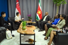 Minister Melvin Bouva ontvangt Ambassadeur van Singapore voor beleefdheidsbezoek 10 dec 2025 - 16:11Op 26 november 2025 jongstleden heeft Minister Melvin Bouva van het Ministerie van Buitenlandse Zaken, Internationale Handel en Samenwerking (BIS), de niet residerende Ambassadeur van Singapore bij de CARICOM, Karen Tan, ontvangen voor een beleefdheidsbezoek.Tijdens dit gesprek werd voornamelijk de nadruk gelegd op de intensivering van de bilaterale samenwerking, in het bijzonder voor digitaliser