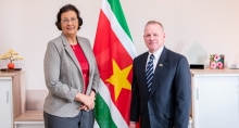 Tijdelijk zaakgelastigde VS bezoekt president Simons 20 feb 2026 - 22:00De tijdelijk zaakgelastigde van de Verenigde Staten in Suriname, Paul Watzlavick, heeft vandaag een bezoek gebracht aan president Simons op het Kabinet van de President. Tijdens het gesprek werd gesproken over het versterken van de bilaterale relatie, met aandacht voor zowel veiligheid als sociaaleconomische samenwerking.Bij de ontmoeting was ook minister Melvin Bouva van Buitenlandse Zaken, Inte