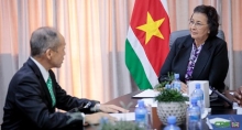 President en Japanse ambassadeur bespreken uitbreiding bilaterale relatie 31 aug 2025 - 16:45President Jennifer Simons heeft een ontmoeting gehad met de Japanse ambassadeur Akima Umezawa. Het betreft een kennismakingsbezoek dat op het Kabinet van de President plaatsvond, in aanwezigheid van minister Melvin Bouva van Buitenlandse Zaken, Internationale Handel en Samenwerking (BIS). Tijdens het onderhoud tussen het Surinaamse staatshoofd en de Japaanse diplomaat stond de wens van Japan om d