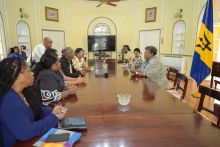 Surinaamse Carifesta-delegatie overhandigt schilderij aan premier Mottley 30 aug 2025 - 19:55Een delegatie die Suriname op de 15e editie van het Caribbean Festival of Arts (Carifesta XV) op Barbados vertegenwoordigt, heeft een beleefdheidsbezoek gebracht aan premier Mia Amor Mottley. Bij deze gelegenheid heeft de Surinaamse vertegenwoordiging een canvas schilderij, vervaardigd door kunstenaar George Struikelblok, officieel aan de premier overhandigd.Het kunstwerk werd de afgelopen drie d