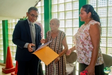 Eerste formele gronduitreiking op het ministerie van GBB 28 okt 2025 - 15:51De eerste formele uitreiking van grondbeschikkingen heeft op dinsdag 28 oktober 2025 plaatsgevonden in de vergaderzaal van het Ministerie van Grondbeleid en Bosbeheer (GBB).De uitreiking werd verricht door minister Stanley Soeropawiro en markeert de officiële start van de formele uitgifte van grondbeschikkingen door het ministerie onder zijn bewind.Tijdens deze plechtigheid zijn 25 grondbeschikk