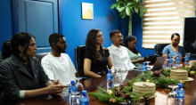 Veel uitdagingen voor nieuwe rvc van de SMS 07 jan 2026 - 11:40Minister Raymond Landveld (m) met de nieuwe raad van commissarissen van de Surinaamse Scheepvaart Maatschap