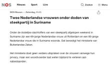Familie Brammerloo spreekt mediabericht tegen: “Geen bijstand ontvangen na dood tante (80)” 06 jan 2026 - 15:00De Nederlandse familie van de 80-jarige Edith Brammerloo, een van de twee Nederlandse vrouwen die in de nacht van zaterdag op zondag 28 december 2025 in Suriname doodgestoken werden door de 43-jarige Dennis Aroma, heeft laten weten dat de berichtgeving van de NOS -dat nabestaanden worden bijgestaan- niet klopt.Volgens neef en nicht Raimond en Miranda Brammerloo uit Nederland is die ondersteuning i