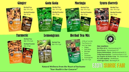 Wanneer op 18 april het EZOTI SURGE Impact Event van start gaat in het New Suriname Dream Café, zal er één stand zijn die gegarandeerd de zintuigen prikkelt met de rijke, aardse aroma’s uit de Surinaamse bodem. Eden Herbs & Spices NV (EHS NV), geleid door het visionaire team onder leiding van directeur Maryan Setrodikoro, staat centraal om een jaar van ongelooflijke transformatie te presenteren.