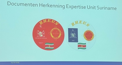 Vijftien overheidsfunctionarissen zijn door het Expertise Centrum Identiteitsfraude en Documenten (ECID) van de Nederlandse Koninklijke Marechaussee in samenwerking met de Documenten Herkenning Expertise Unit Suriname (DHEUS) van het Korps Militaire Politie (KMP) getraind in het herkennen van identiteit- en documentfraude. Deze functionarissen, die van maandag 20 oktober tot en met vrijdag 24 oktober 2025 deel hebben genomen aan de ‘Document Security Course Advanced Level’, waren afkomstig van het KMP, het ministerie van Buitenlandse Zaken, Internationale Handel en Samenwerking (BIS), Directoraat Nationale Veiligheid (DNV), Korps Politie Suriname (KPS) en het Algemeen Pensioenfonds (APF).
