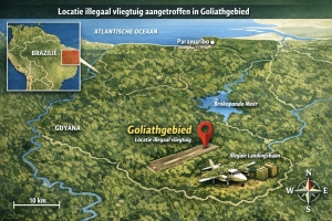 Tweemotorig toestel ontdekt op geheime landingsbaan in Goliathgebied