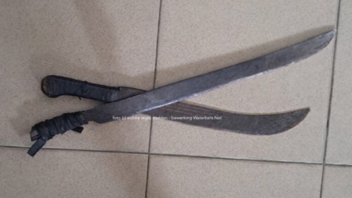 De Surinaamse politie heeft beide houwers in beslag genomen (foto) in het kader van het onderzoek. R.M. is aangehouden en na overleg met het Openbaar Ministerie in verzekering gesteld. Het onderzoek duurt voort.