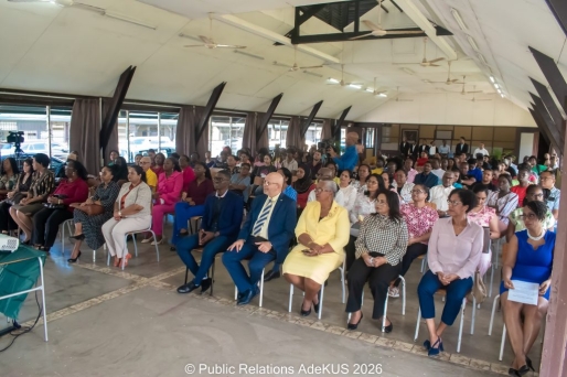 Mw. Virginia Asin-Oostburg, voorzitter van het Bestuur van de AdeKUS, benadrukte tijdens de bijeenkomst dat de universiteit als instituut voor academische ontwikkeling een wezenlijke bijdrage levert aan de ontwikkeling van vrouwen in alle sectoren van Suriname. “Vandaag staan we stil bij de prestaties van vrouwen en zeggen we dat we trots zijn op wat zij bereiken.