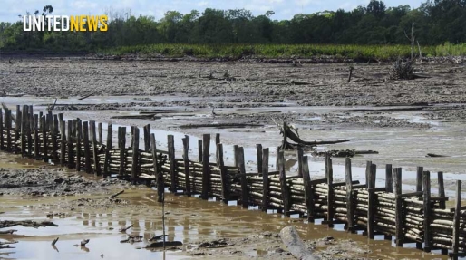 Sinds vorige week maandag staan uitgestrekte gebieden ten zuiden van de Brantimakaweg volledig onder water, waardoor het vroegere landbouwgebied is veranderd in een drassig moeras. De weg was grotendeels onbegaanbaar geworden. De tijdelijke hulpdammen, die moesten voorkomen dat zeewater het land binnendringt, waren op verschillende plaatsen bezweken onder de kracht van de golven.