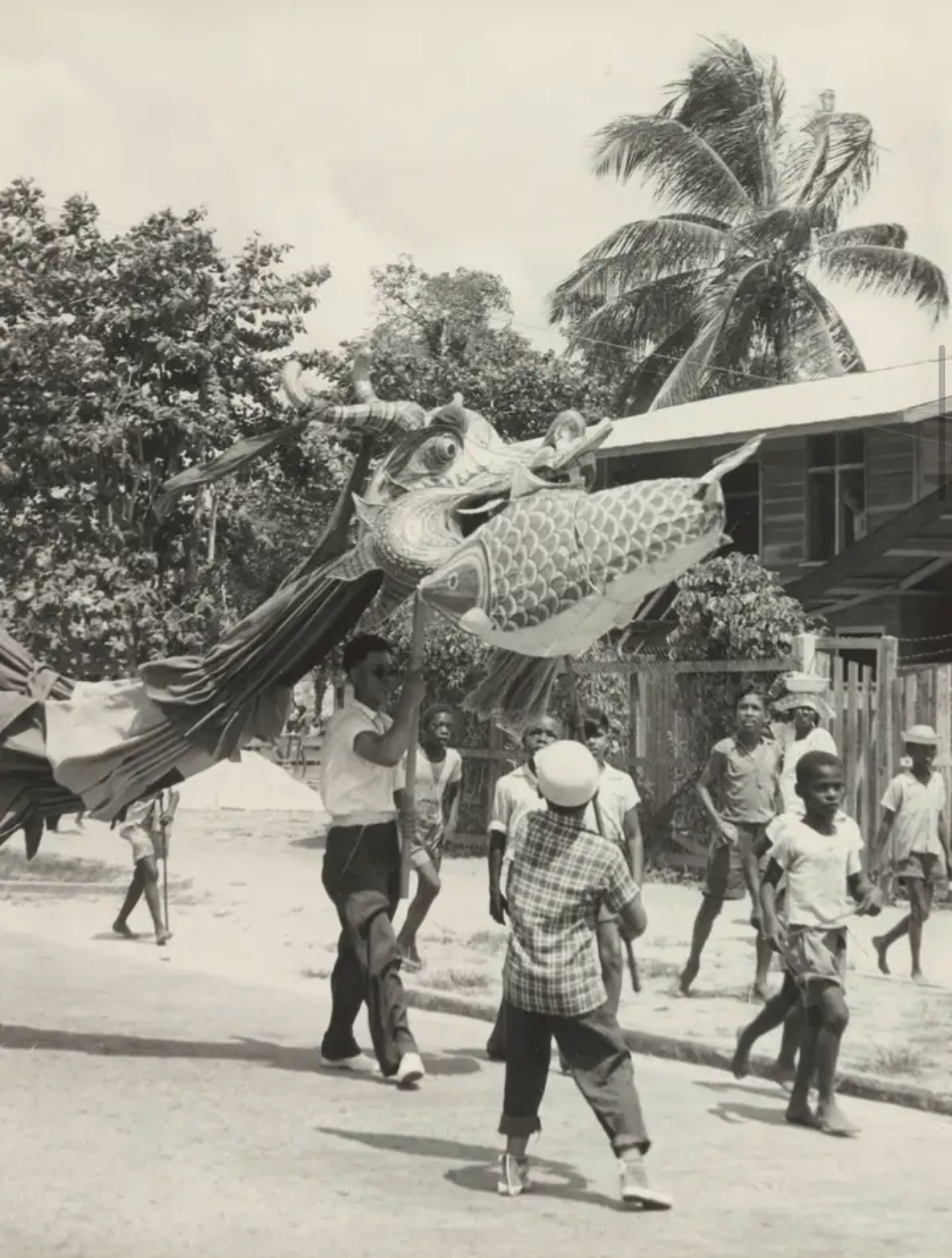 Nazaten van Chinese contractarbeiders vieren in de jaren vijftig Chinees Nieuwjaar in Suriname.