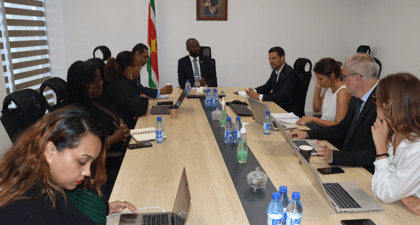 Een delegatie van het Franse Ontwikkelingsagentschap (AFD) heeft een officieel werkbezoek gebracht aan minister André Misiekaba van Volksgezondheid, Welzijn en Arbeid. Tijdens dit overleg op maandag 13 oktober 2025, waren ook drs. Rakesh Gajadhar Sukul, directeur van het ministerie en mw. Grätl Petrisie-Blokland, projectmanager van dit project aanwezig.