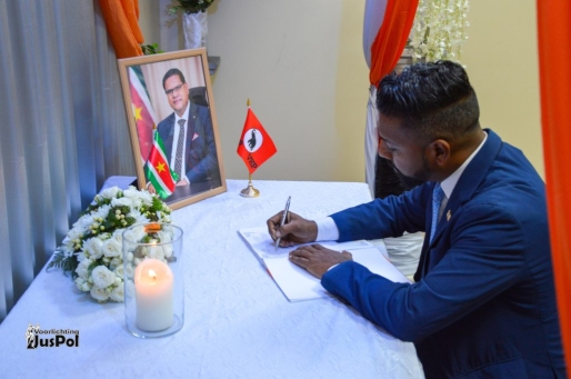 De minister van Justitie en Politie, ( JusPol), Harish Monorath heeft zijn oprechte medeleven betoond naar aanleiding van het overlijden van de gewezen president van de Republiek Suriname, Chandrikapersad Santokhi.  Op donderdag 2 april 2026 is de bewindsman geweest bij het Presidentieel Paleis, waar hij het condoleance register getekend heeft en daarna getogen naar het Partij centrum van de Vooruitstrevende Hervormings  Partij( VHP), waarvan Santhoki voorzitter van was.