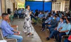 De first lady wijst de kinderen van Mulo Schotelweg op de gevaren van pesten