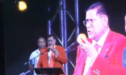 VHP voorzitter, president Chan Santokhi, is dik tevreden over de opkomst tijdens de massameeting die zaterdagavond is gehouden in 'de Olifant'. (Foto: René Gompers)