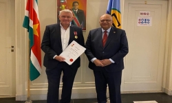 De Stichting Vrienden van Suriname, meldt via een persbericht dat de voorzitter van de stichting, Will van Rhee, donderdagochtend uit handen van de ambassadeur van Suriname, Rajendre Khargi, een oo