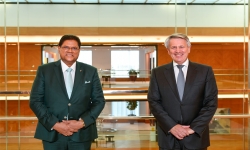 Tijdens zijn bezoek aan Nederland van 6-11 september 2021 ontmoette president Chandrikapersad Santokhi ook de Senior Leadership van Shell op het hoofdkantoor in Den Haag, onder leiding van de heer