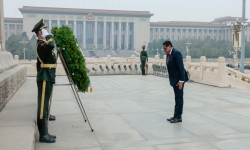 President Chan Santokhi heeft als symbolisch onderdeel van het programma gedurende het staatsbezoek aan China vandaag op het Tiananmenplein in het centrum van de Chinese hoofdstad Beijing e