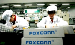 Foto: Medewerkers van het Taiwanees technologiebedrijf Foxconn, dat onder meer de iPhones van Apple in elkaar zet.