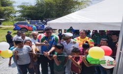 Tijdens het werkbezoek aan Apoera op 12 maart 2023 was president Chandrikapersad Santokhi samen met districtscommissaris Josta Lewis en de ministers Parmanand Sewdien van Landbouw, Veeteelt en Viss