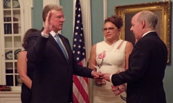 Tijdens een ceremonie op het Amerikaanse ministerie van Buitenlandse Zaken, is Robert Faucher vorige week beëdigd als de nieuwe Amerikaanse ambassadeur voor Suriname.