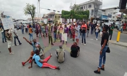 Er is gisteren opnieuw geprotesteerd in de binnenstad. Foto: Suriname Herald