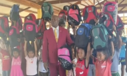 Vicepresident Ronnie Brunswijk deed gisteren in het inheems dorp Galibi de kick-off van schooltassenproject.