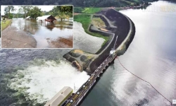 De huizen van het transmigratiedorp Nieuw Lombé, in Brokopondo, staan nog steeds voor meer dan anderhalf meter onderwater. Tot en met het afgelopen weekeinde was er geen sprake van een dusdan
