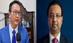 Foto: v.l.n.r. Vernon Wei Jun ( Senior IT Manager, DP World Paramaribo en Zuster. Joeroeja Hoofdverloskundige St. Vincentiusziekenhuis).